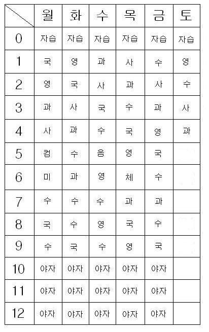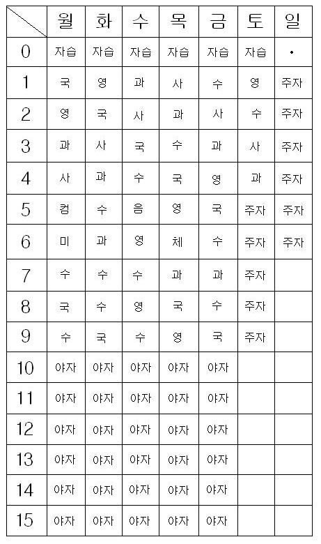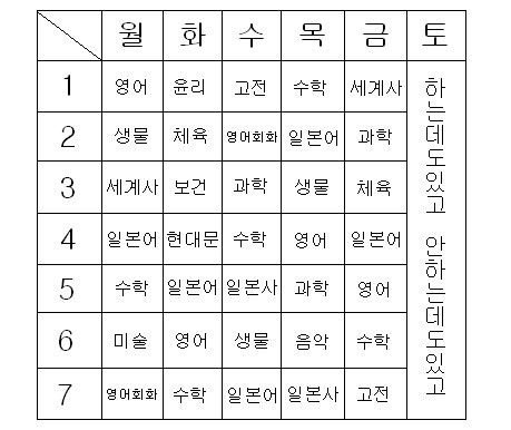 우리나라시간표에대해서불평하려는 목적으로 쓴 글도 아니며