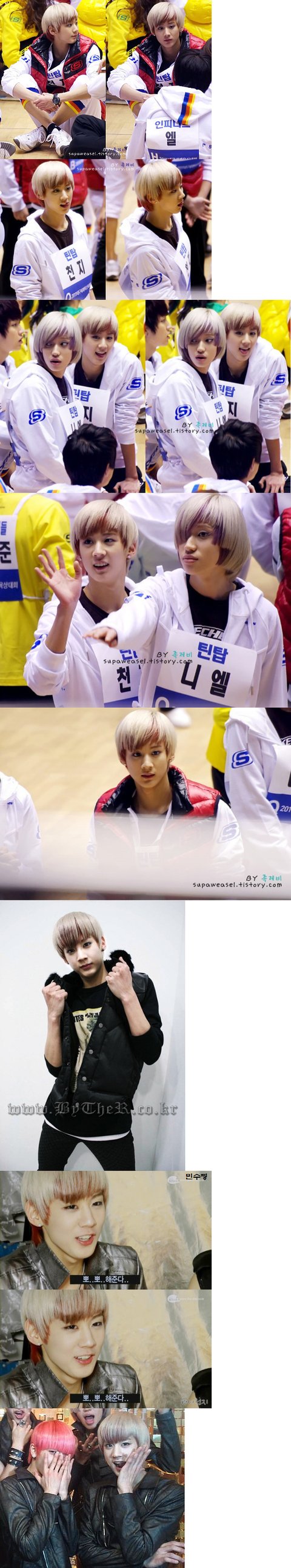 ↓내가 정말 좋아하는 아이돌 육상대회? 사진 ㅋㅋㅋㅋ 마주보고 있는 인피니트 엘과 천지 훈훈..ㅎㅎ