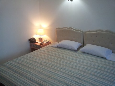 ... 수영장은 커녕 커다란 침대 한짝과 색바랜 침구가 전부 ...