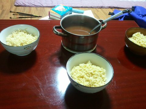 그래서 오늘 친구와 함께 방학숙제를 같이하려구 만낫다가 라면을 먹엇지요!