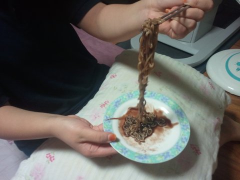 결국 친구도 못먹겟다 해서 친구는 면을 쪽쪽빨아 초코시럽만 먹은뒤 다시 뱉고 그 뱉은 면은 버렷음 ㅋㅋ