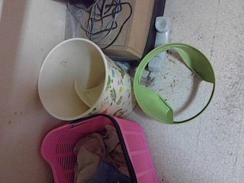 (방석을 가구를 고정시키는데 사용해서 못쓰게 만들었고, 룸메가 두고간 쓰레기통이 부서짐)