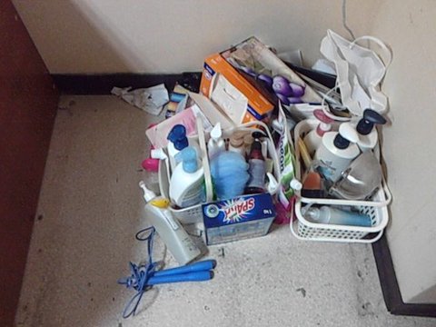 베란다에 놔두던 세면도구도 어쩔 수 없이 바닥으로 옮겨놨었는데(가구를 밖으로 빼야했고, 기숙사는 참고로 공간이 너무 좁아서 바닥에 놓는 방법밖에 없었음) 그 세면도구들에도 유리가 튄거같음