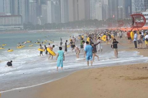 해운대에는 이미 많은 사람이 여름을 즐기고 있었습니다~
