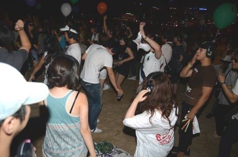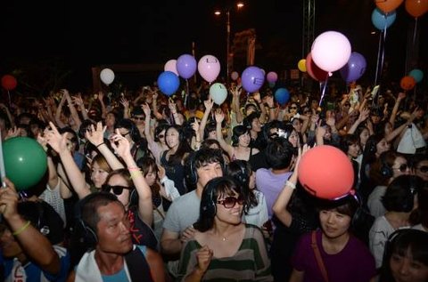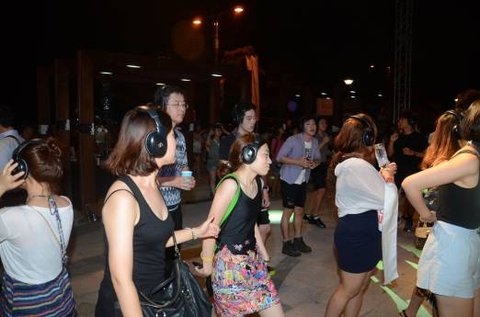 ‘사일런트 디스코 파티는’ 각자 헤드폰을 쓰고