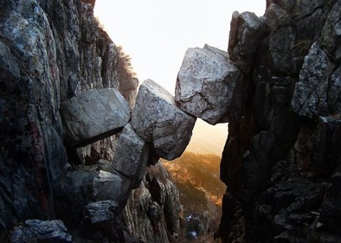 이 산 중턱에는 큰 바위 세개로 만들어진 다리가 있는데 아무도 어떻게 이런 다리가