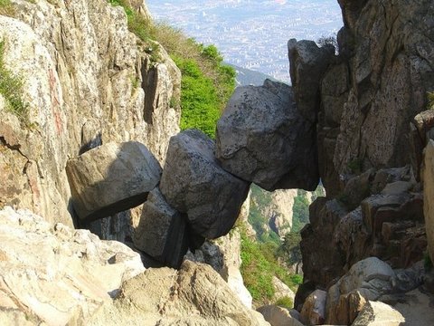 중국 산동지방의 타이산(태산)에는 수천년전에 자연이 만들어 놓은 특이한 다리가 있습니다.