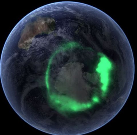 인도양 남부 상공의 오로라를 지구 위에서 찍은 장면