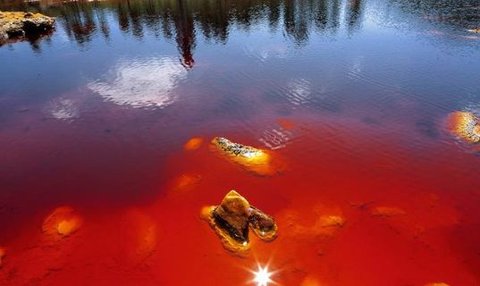 에로빅 박테리아 때문에 강물이 붉은색을 연출하고 강산성을 띔