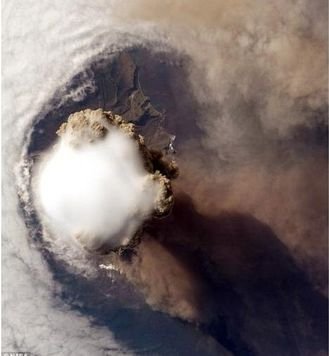 화산활동을 위성사진으로 찍은 장면