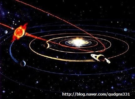 그런데 이 행성을 주장했던 과학자들은 이 행성은 지구쪽으로 계속해서 날아와 2012년에 지구를 빗겨가거나 혹은 충돌한다는 겁니다.