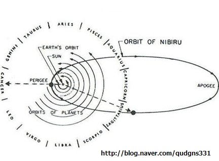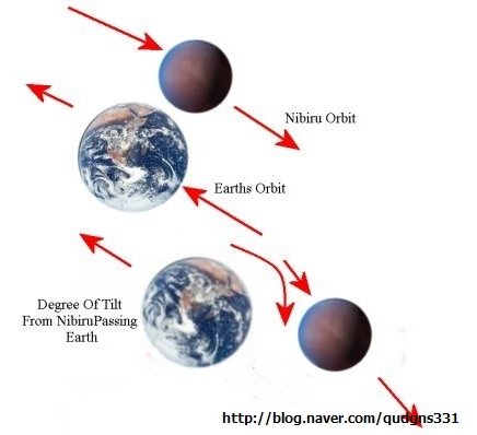 그 니비루가 지구와 태양 사이를 지나간다면... 니비루의 자력에 의해 지구의 자전축이 봐뀌게 되어 지구는 극지점과 적도지역이 섞여 버리게 되겠지요.