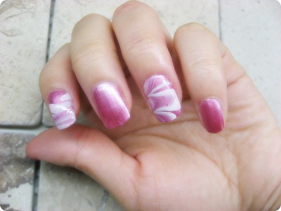 펄 컬러인 점을 감안해 호일핑크를 풀콧한 다음 두가지 색을 섞어 마블을 시도해 봤습니다