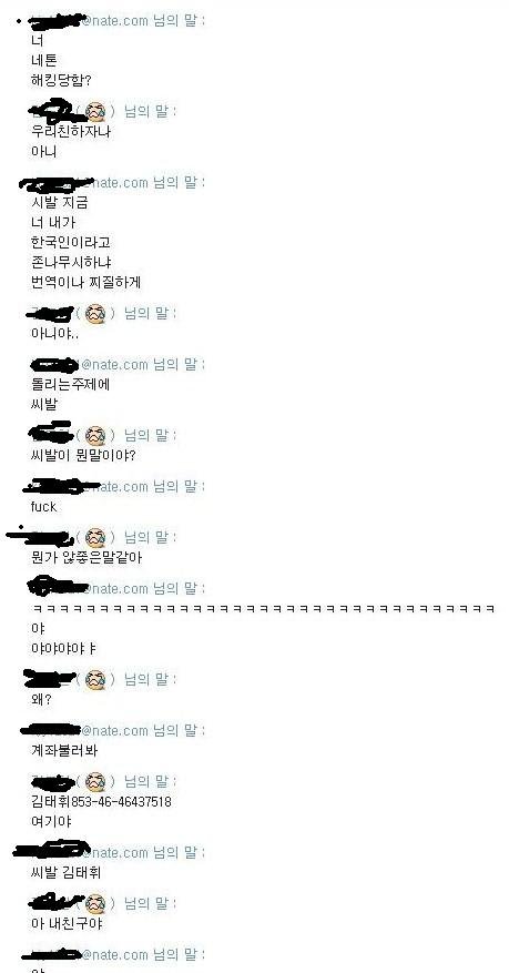 대화 중에 욕설 있는거 아는데 문제되면 말씀해주세요