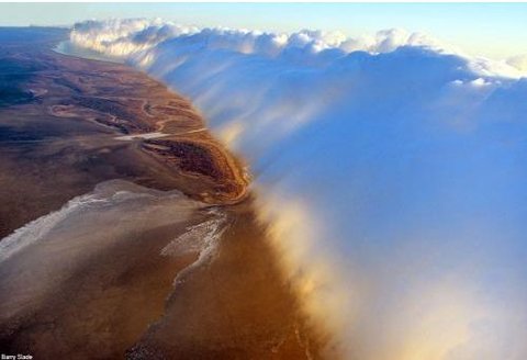 호주 북부 외곽지역의 버크타운(Burketown)부근에서 하늘 위로 끝없이 이어지는 거대한 구름