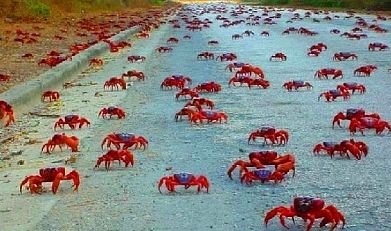 갑자기 약 1억마리의 붉은 게들이 번식을 위해 인도양으로 이동한다