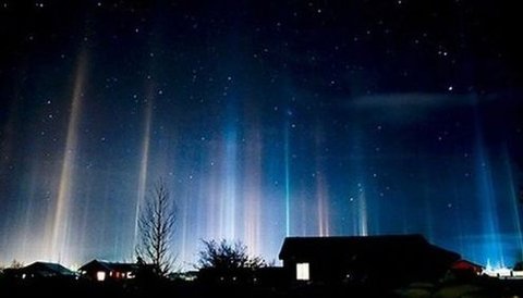 특수한 기상 현상 조건 아래 빛의 기둥이 생기는 현상