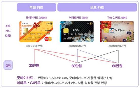 연회비 및 사용 실적을 공유할 수 있는 상품조합을 뜻하며