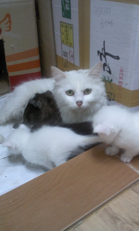 구조가 끝인 줄 알았습니다. 하지만.. 3일후에 여섯마리의 아기냥이들을 출산하게 됐고, 두달동안 저는 경계가 풀어지게끔 노력에 노력을 하였지만 여전히 경계심은 줄지 않고..