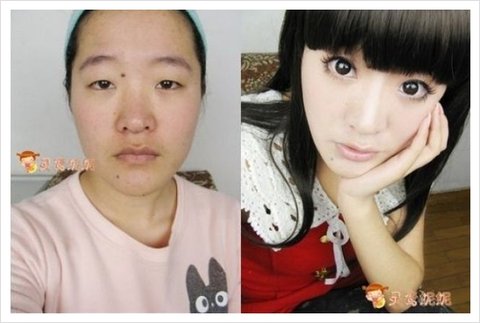 속눈썹을 그리고 눈매를 정돈, 피부를 칠하고 입의 형태를 부드럽게 한 다음 이빨을 더욱 가지런히 합니다.