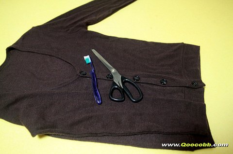 자 요번엔~ 이렇게 자른 칫솔의 효과를 봐야죠 ? 쓱싹쓱싹 보풀이 있는 곳에 칫솔질을 합니다.