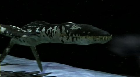 모사사우르스: 이 시기 최강의 포식자. 몸길이 17m .리우플레우로돈의 천적.