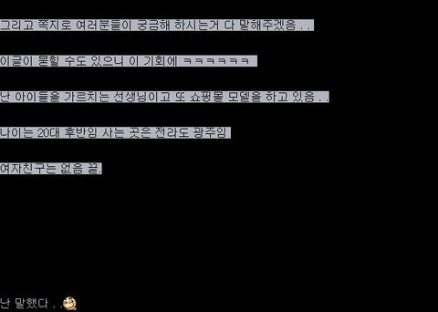 그리고 쪽지로 여러분들이 궁금해 하시는거 다 말해주겠음 . .