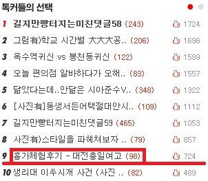 톡5위까지 올려주시면 혼숨 하고올께요. ㅋㅋ