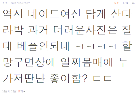너 더럽다 ㅅㅈ여자냐 ㄱㄹ냐는등등..
