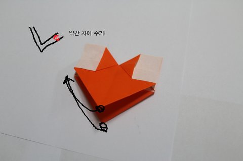 (접어본 결과 위아래 세모끝이 딱 맞는것 보다 아래것이 조금 튀어 나오는것이 조음)