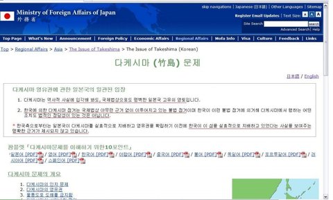 아실지 모르겠지만 일본 외무부 홈페이지에는 '다케시마'가 있답니다.