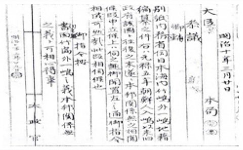 '書面 竹島外一島之 義本邦關係無之義卜 可相心得事'<일본국립공문서관 소장 '태정관(太政官 문서> "울릉도(당시 竹島)와 그 외 1개 섬인 독도(당시는 松島)는 우리나라(日本)와 관계없다는 것 등 심득(心得,마음에 익힐 것)할 것".