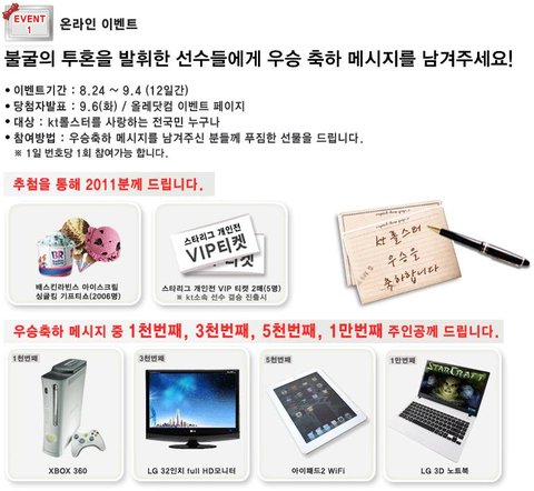 kt 롤스터에서 우승기념이벤트를 진행중이더군요.