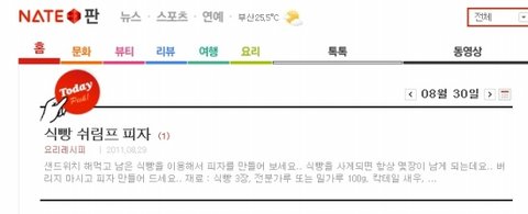8월 30일자 Nate메인 페이지와 today pick에 제 식빵쉬림프 피자가 소개되었어요..