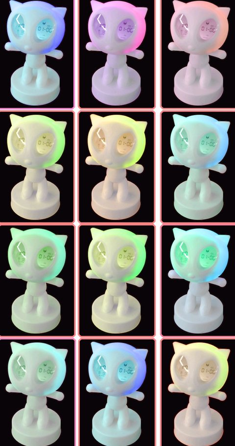 냥이 얼굴모양 탁상시계인데 12가지색으로 변한다네요 :D