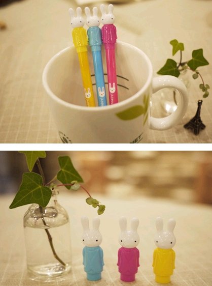 볼펜뚜껑이 귀요미토끼로 만들어진 볼펜