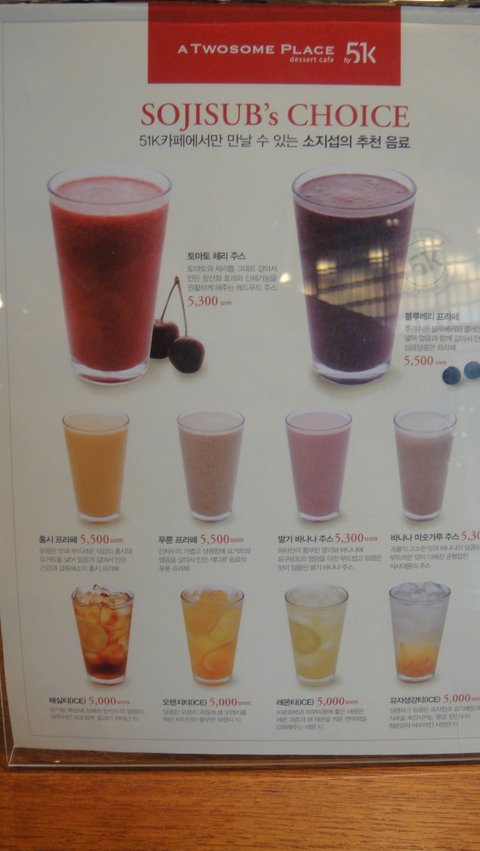 프라페나 과일을 이용한 음료들이 대부분이였는데요,