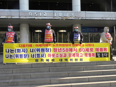 누구보다도 노조원을 최우선으로 생각하고 보호해야할 아세아제지 노조위원장은 해고 전이나 해고 후에도 노조원인 해고자들과의 만남 자체를 꺼려했고, 일방적으로 피해다녔습니다.