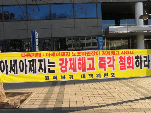 저희 아버지는 지난 해 12월 16일부로 충청북도 청원군 부용면 금호리에 있는 아세아제지에서 동료 세 분과 함께 강제 해고를 당하셨습니다.