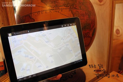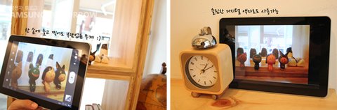 동영상도 보고 신문도 보면서 잠시 쉬는 동안, 카페가 너무 예뻐서 사진을 찍으려는데 제가 카메라를 집에 두고 와서 제 앞에 있던 갤럭시탭10.1을 들고 사진을 찍었습니다. 갤럭시탭10.1의 후면 300만 화소, 전면 200만 화소의 카메라는 자신이 남기고 싶은 장면은 쉽게 촬영이 가능한데요. 특히 후면에 있는 LED 플래시는 어두운 곳에서도 촬영을 가능하게 해줍니다.