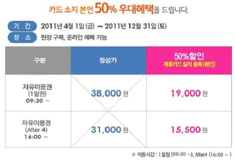 저 역시 비싼 자유이용권, 50% 할인 받을 수 있는 체크카드를 꼭 준비해갔답니다!