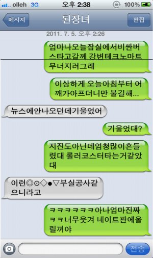 ?>??????이상한 특수문자와 함께...ㅋㅋ저런 알수없는 문자를 보내주셧음ㅋㅋㅋㅋㅋㅋㅋㅋㅋ