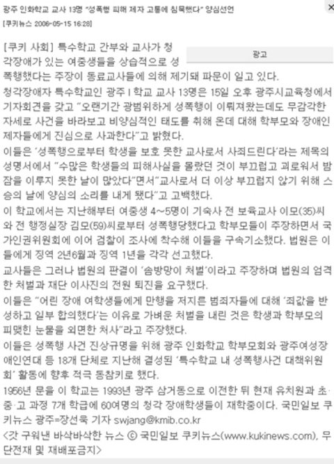 영화 "도가니"로 묻혀져간 이 사건을 우리에게 다시 일깨워줍니다.