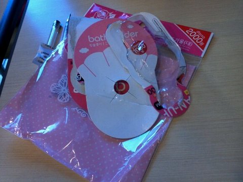 그때! 우리눈에 들어온 완소 아이템 각 학교 각 반 공주들만 든다던 볼펜끝에 털달린 펜 >.< 헉 6000원?? '아... 이쁜데... 살까?..' '좀 비싸네.. 물병보다 펜이 더 비싸..' '에라 몰라 사지 뭐 이쁘자나 ㅎㅎㅎ' 이렇게 우린 내적갈등을 겪으며 구입.