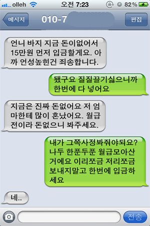 나 : 저 24살이구 그쪽한테 반말들을 나이 아니에요. 여기 계좌 적어놨으니까 말씀하신 29만원