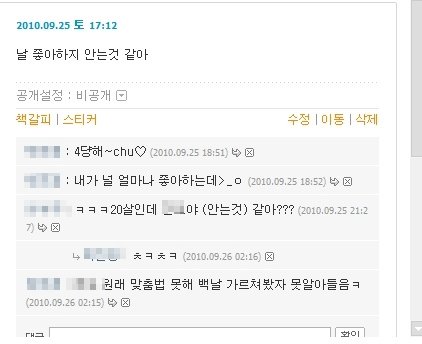 뭔가 나님한테 토라진게 있으면 나님 보라고 미니홈피 다이어리에 진지하게 써놓음