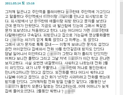 어느날은 정말 화가났는지 편지에 "아 진짜 너만 옆에있었으면 X나 화풀이할텐데ㅡㅡ아"