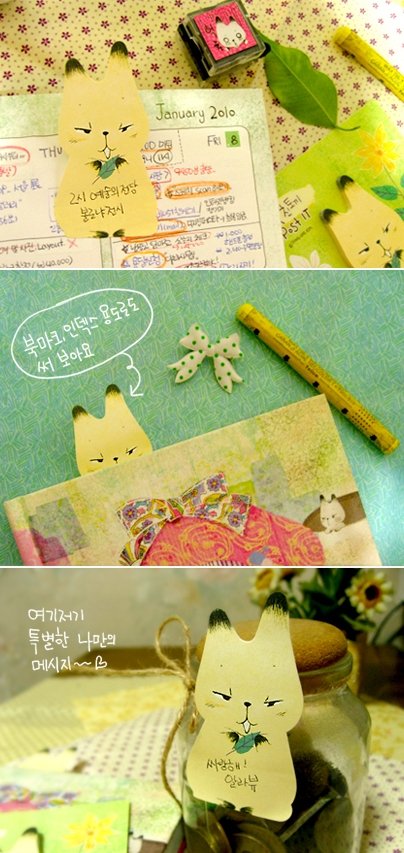 표정이 까칠해보이는 토끼포스트잇 ㅋㅋ 책갈피로 붙여놓은거