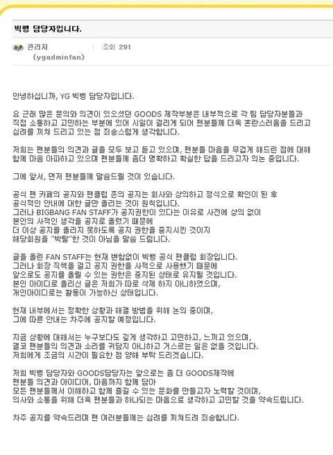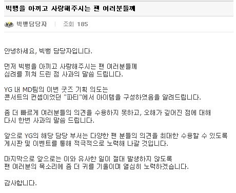 +++)댓글에 써주신 분이 말해주신 YG측의 공지입니다.