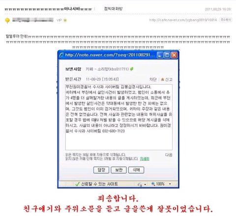 약대동 살인사건은 위 최초유포자가 받은 쪽지에서 보이듯 범인검거 완료상태임.